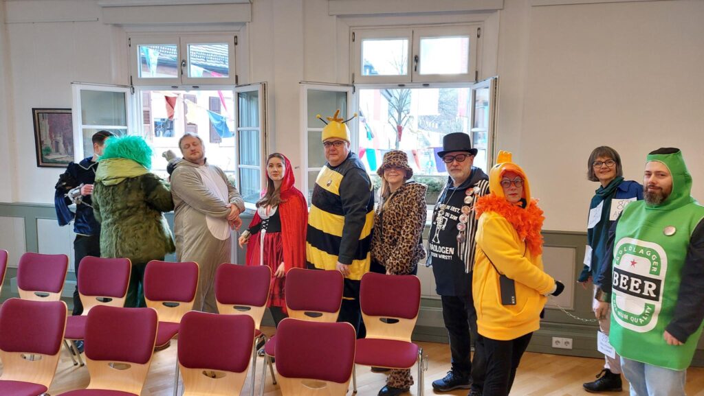 Am 1. Februar fand in der diesjährigen Fasnachtskampagne der Narrensprung hier in Grötzingen statt. Traditionell werden der Ortschaftsrat und der Ortsvorsteher in Ketten gelegt, aus dem Rathaus geführt und der Ortsvorsteher muss den Schlüssel des Rathauses für die nächste Zeit den Narren übergeben.