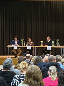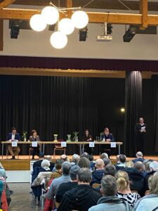 Wie schon bei der Bundestagswahl vor einem Jahr, gab es auch vor der Landtagswahl am 8. März eine gemeinsame Veranstaltung von Grünen, SPD, CDU und FDP in Form einer Podiumsdiskussion in der Herbert-Schweizer-Begegnungsstätte. Dabei haben sich die jeweiligen Kandidatinnen und Kandidaten persönlich vorgestellt, wurden zur verschiedenen Themen befragt und haben auch den Bürgerinnen und Bürgern Rede und Antwort gestanden.