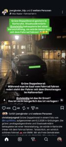 „Staatssekretärin @uteleidig behauptete bei einer Veranstaltung, sie würde immer nur mit dem Fahrrad fahren!“