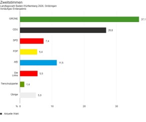 Am 8. März wurde der Landtag von Baden-Württemberg neu gewählt. Für Grötzingen gibt es folgendes Ergebnis, über das wir uns sehr freuen.
